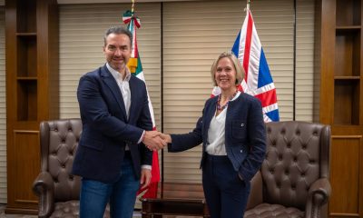 Visita embajadora británica al alcalde Adrián de la Garza. Una comitiva de diplomáticos del Reino Unido, encabezada por la recién nombrada embajadora en México, Susannah Goshko...